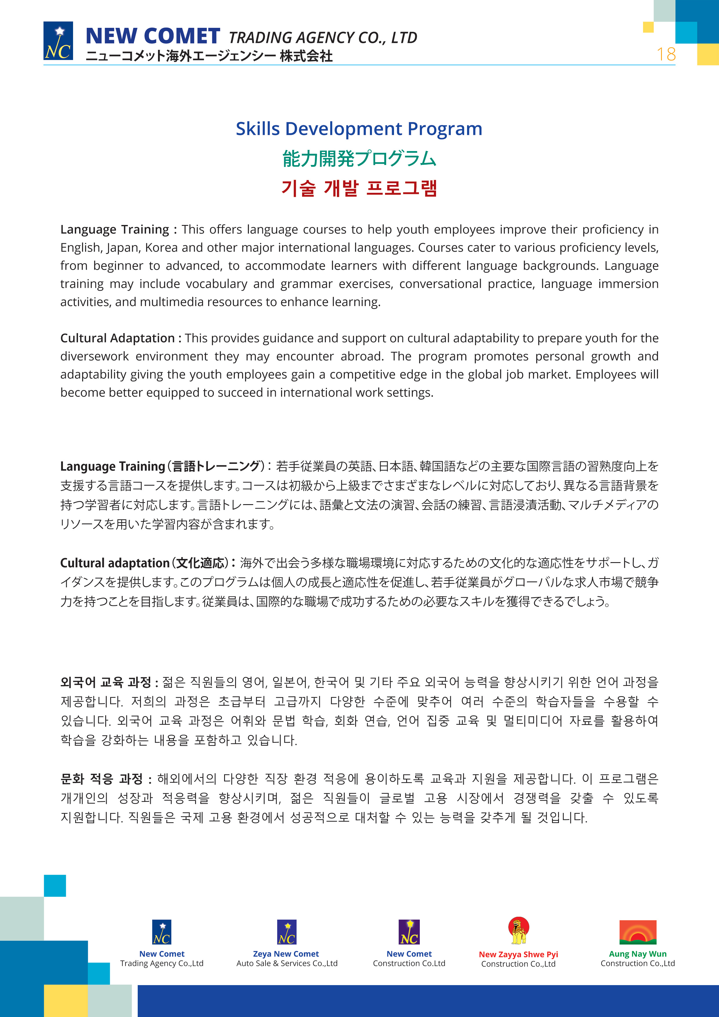 We, "NEW COMET TRADING AGENCY" company, is constantly striving to provide services that produce talented skilled workers from Myanmar and send them to foreign countries.
