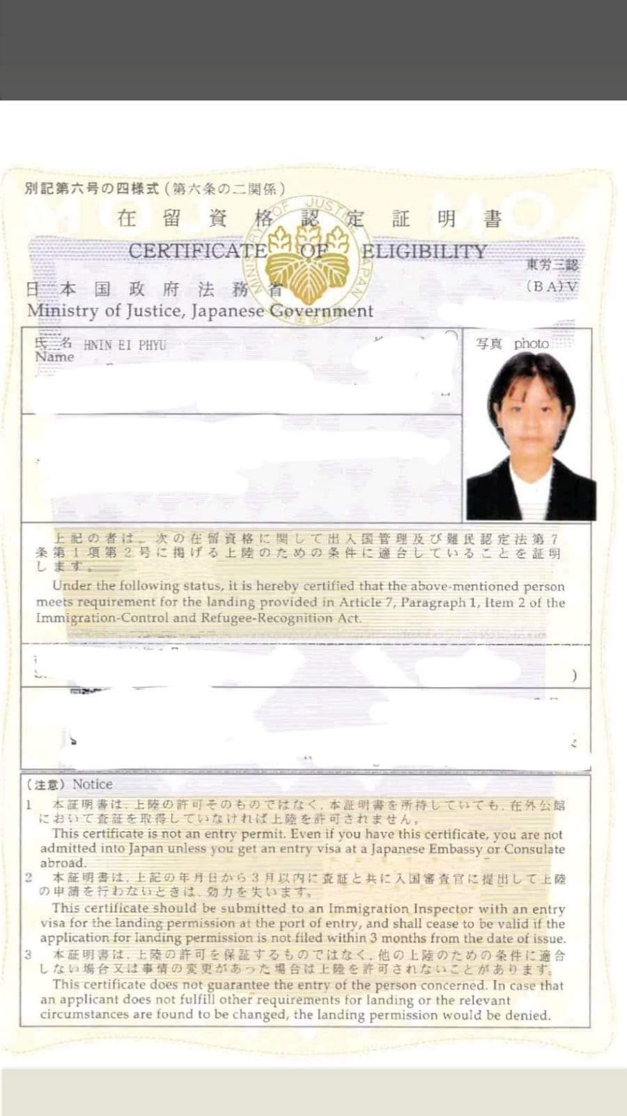 HNIN EI PHYU さん、EI SHWE ZIN さん、AUNG ZIN OO さん、COE 取得おめでとうございます